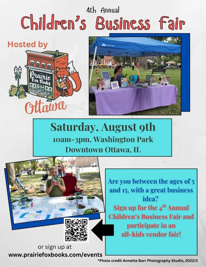 Join us on Washington Square for the 4th Annual Children’s Business Fair hosted by Prairie Fox Books. We are serving from 10-3 in our usual location, Jackson & LaSalle Streets. Children’s Business Fair details are below.
